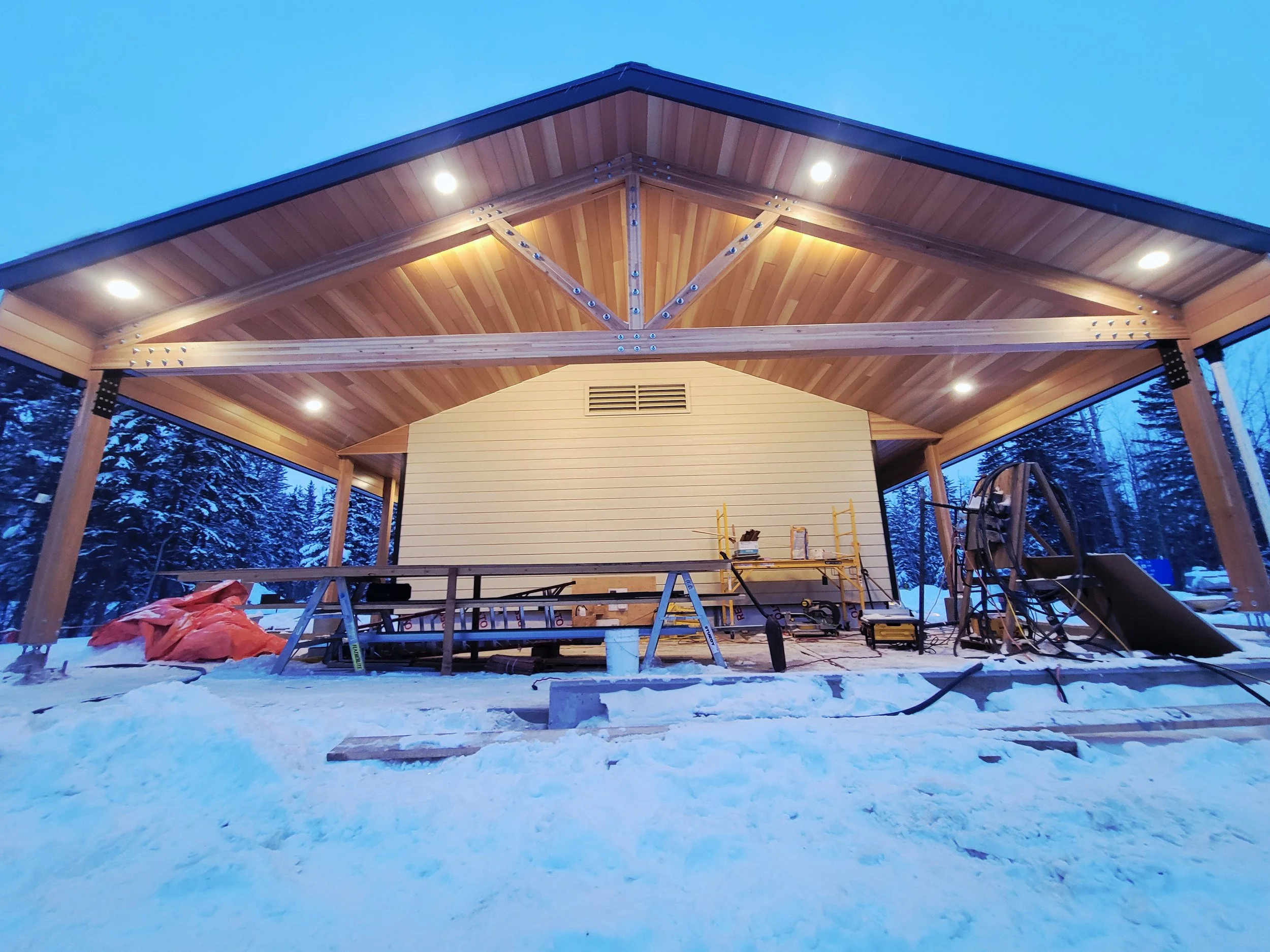 Complete exterior system installation including standing seam roofing, custom sheet metal, and full building envelope assembly.
